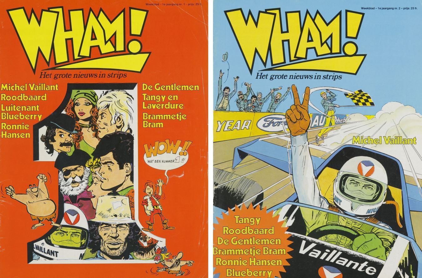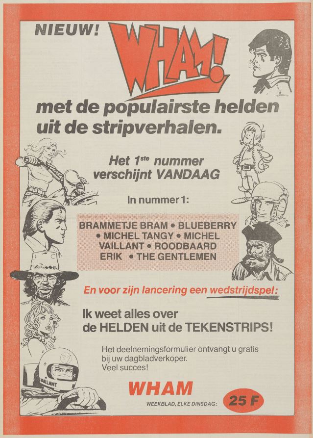Het eerste nummer van Wham!, waarvan de voornaamste doelgroep de jeugd van 9 tot 14 jaar was, verscheen op 13 februari 1979. Aan ambitie geen gebrek: de top van de Belgische en Franse stripwereld werkte mee aan het blad. In het eerste nummer alleen al vond de lezer werk van onder anderen Jean Giraud (Blueberry), Jean Graton (Michel Vaillant), Eddy Ryssack (Brammetje Bram), Jijé (Roodbaard, Tangy en Laverdure), Guy Bara (De steen-vreters) en Raymond Reding (Ronnie Hansen). Scenarist Jean-Michel Charlier (die zowel Blueberry, Roodbaard en Tangy en Laverdure schrijft) was de centrale figuur van Wham!, dat hij in zijn voorwoord ‘het eerste Europese stripblad’ noemde. Gelijktijdig met de Vlaamse Wham! verscheen het tijdschrift immers ook in Nederland (eveneens als Wham!), Frankrijk en Franstalig België (Super As/Super J) en Duitsland, waar de oorsprong van het initiatief lag het blad als Zack al sinds 1972 liep.